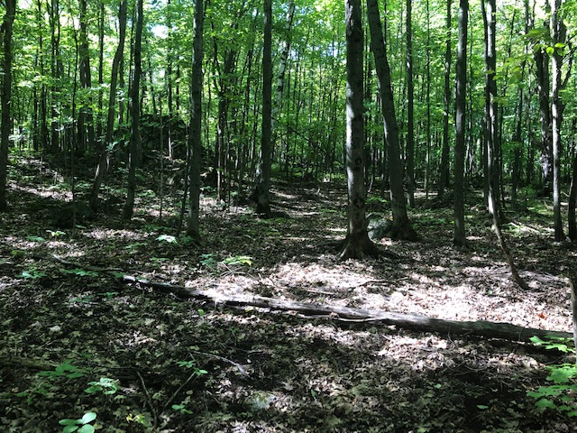 The terrain is typical of Gatineau Park - deciduous forest with lots of rock features. Technical orienteering. The woods are open and will be absolutely beautiful in the Fall. There are many trails in this area - both paved bike paths and smaller hiking trails. It will be physically challenging due to the many hills and rocky areas.